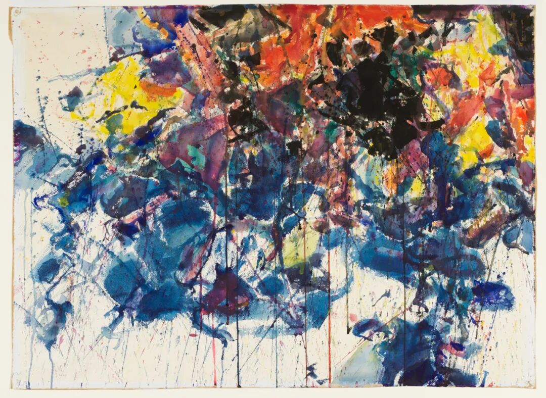 山姆·弗朗西斯(Sam Francis)《紅、黑、藍構成》(Red, Black & Blue; Composition),紙面水粉,55.88×74.93cm,1958年,來自琳達·卡珊收藏 ©Sam Francis Foundation, California / DACS 2021 Photo credit: ©The Courtauld