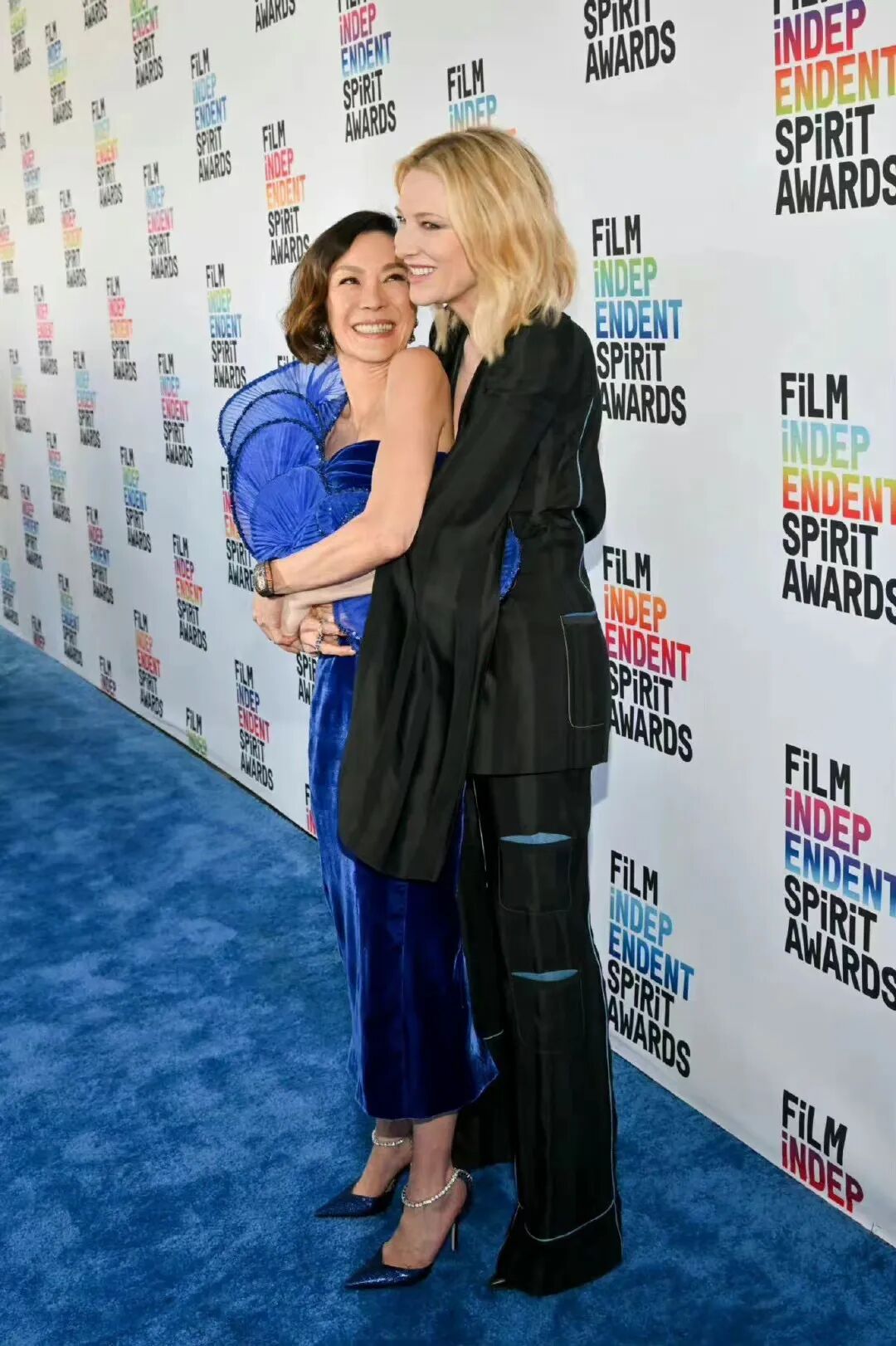 凱特·布蘭切特一身Loewe 2018秋冬系列套裝亮相,攻氣十足。楊紫瓊身穿Gucci藍絲絨抹胸禮服,胸前的圓扇裝飾過分耀眼。
