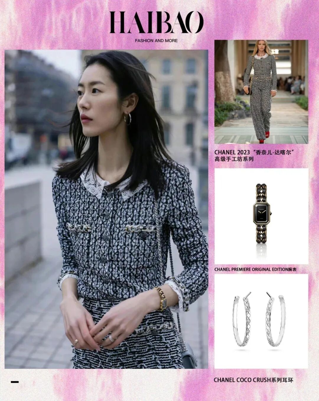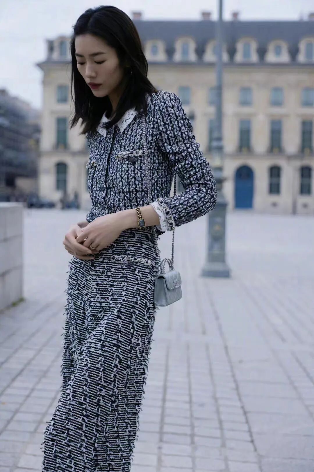 劉雯身穿品牌高級手工坊系列套裝,黑白菱格交織淡雅又高級,終於又見到Chanel雯!