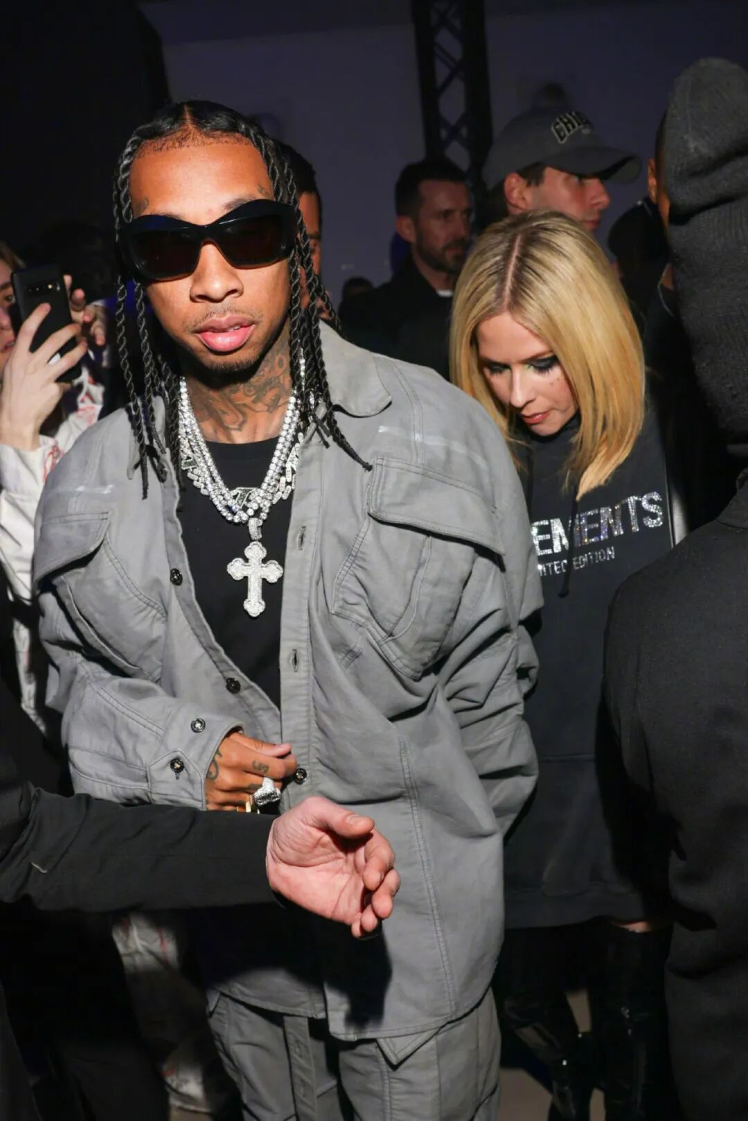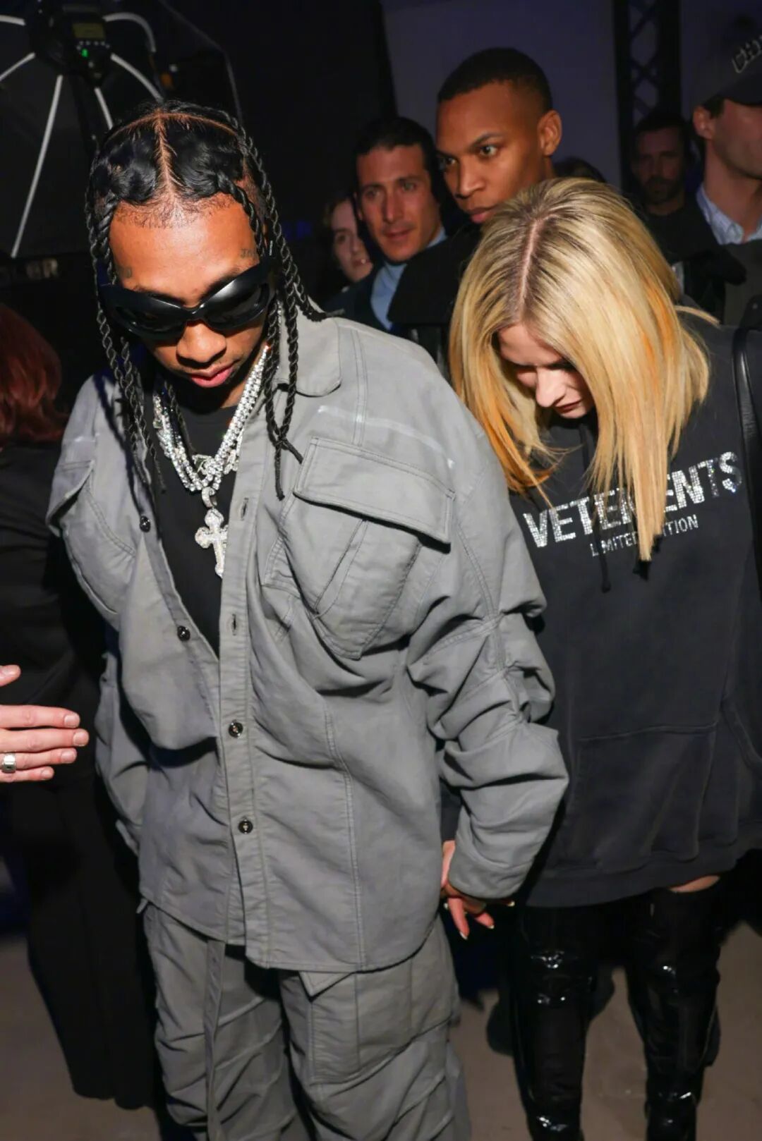 3月6日,艾薇兒與說唱歌手Tyga牽手亮相巴黎時裝週,兩人在秀場大方接吻秀恩愛。