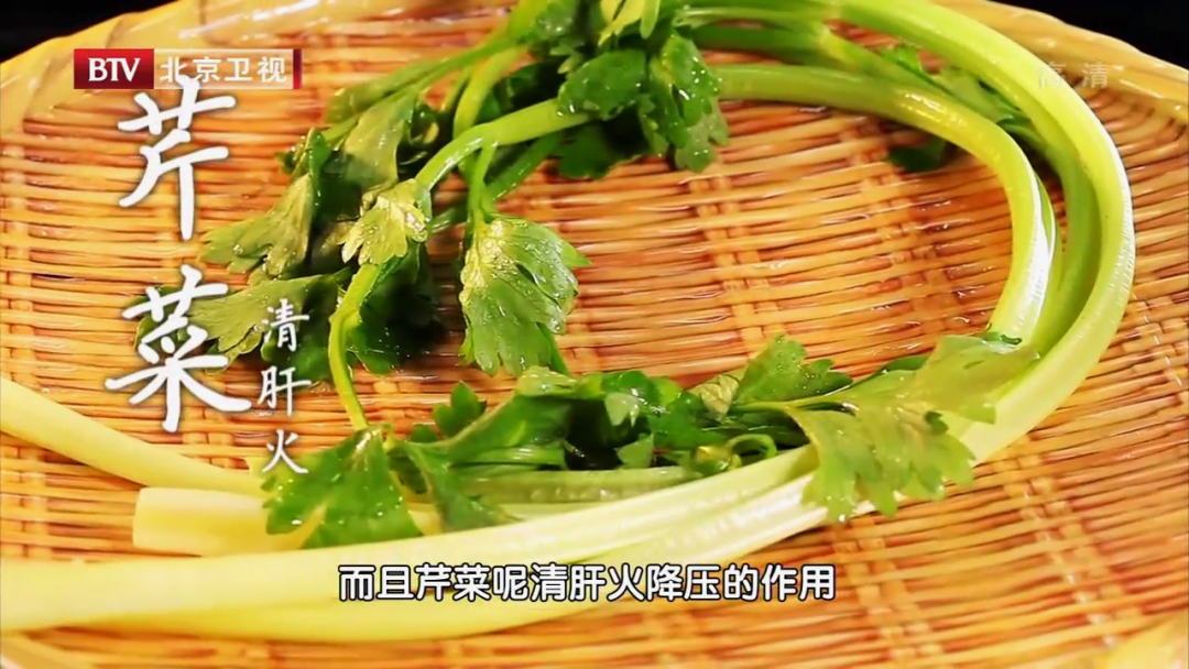 芹菜性涼味甘,有平肝清熱,祛風利溼,除煩消腫的功效,《滇南本草》記載,它“治頭熱、止頭疼、祛風”。