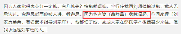 翁靜晶在知道這件事後,瞬間採取行動,把惠英紅趕出了劉家班。