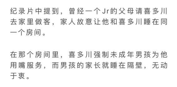 3月7日,BBC公開了日本最大的養成系公司老闆對旗下藝人的性虐紀錄片。