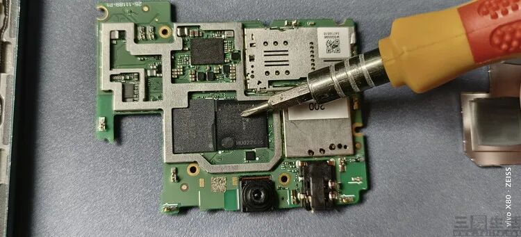 拆開手機、掀開屏蔽罩後就可以看到,這款芯片表面的絲印是“SM4125”。眾所周知,驍龍460的代號是“SM4250”,所以這枚芯片理論上應該是驍龍460上一代產品的簡化衍生版本。