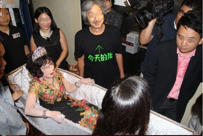 黃夏蕙戴著皇冠、穿著亮晶晶的壽衣體驗了一把水晶棺,耗費了數百萬。這想法,真的是走在時代前沿了啊。