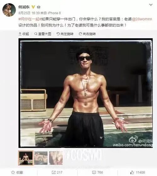 而且何潤東不只身材狀態保持得好,他的婚姻保持得也是相當甜蜜。