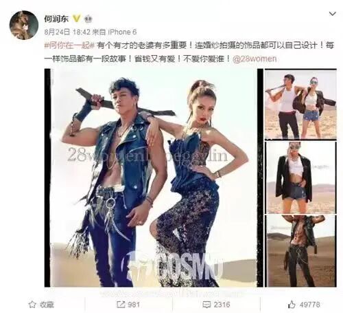 這些年,在Peggy的品牌做宣傳時,何潤東都會用全力支持她的事業,夫妻店開得如火如荼↓