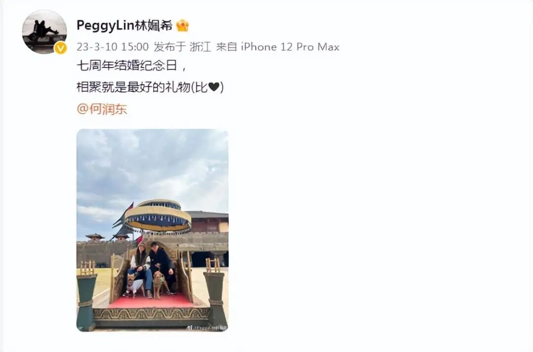 昨天在差不多的時間,Peggy也發佈動態慶祝二人結婚七週年,