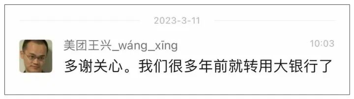 所幸的是,根據今天社交平臺上王興的回應,“很多年前就轉用大銀行了”,美團目前已沒有存款在硅谷銀行。