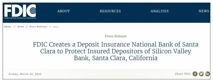 之後,更爆炸的消息傳出:硅谷銀行被加州監管機構關閉,美國聯邦存款保險公司(FDIC)被任命為破產管理人,接管硅谷銀行。