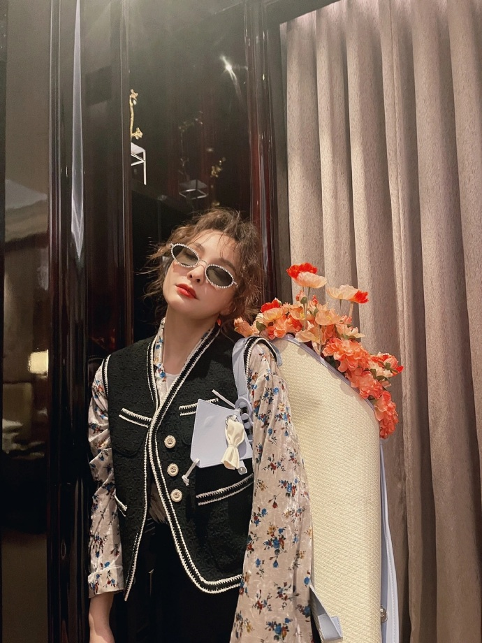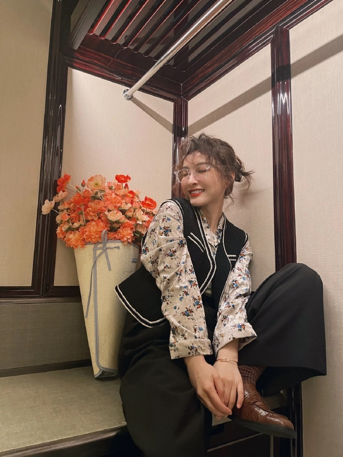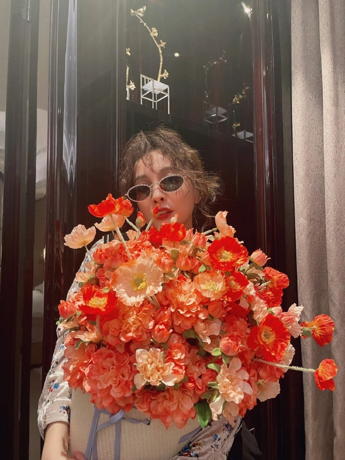 戴上黑色鑽邊墨鏡,吳昕更是整個人氣場全場,其手捧著的一大束橘色鮮花與她的酷颯形象形成強烈對比。畫面非常有衝擊力,滿滿的文藝範氣息襲來,太好看了。身形方面也是很纖細苗條,跟少女一樣,維持得相當好。
