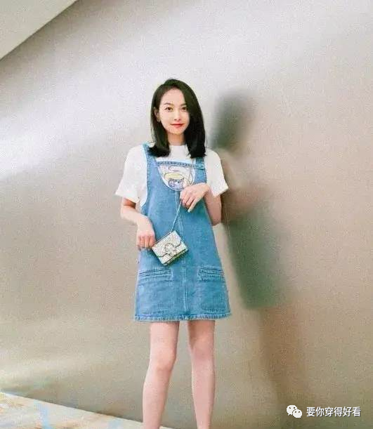 藍色牛仔揹帶裙搭配寬鬆T恤,甜美又清爽,這種風格太適合二十歲左右的妹子們了,配上可愛又小巧的亮片mini包包,一雙同款亮片尖頭平底鞋又不失女人的小性感,這套是清新甜美的夏日浪漫沒錯了。
