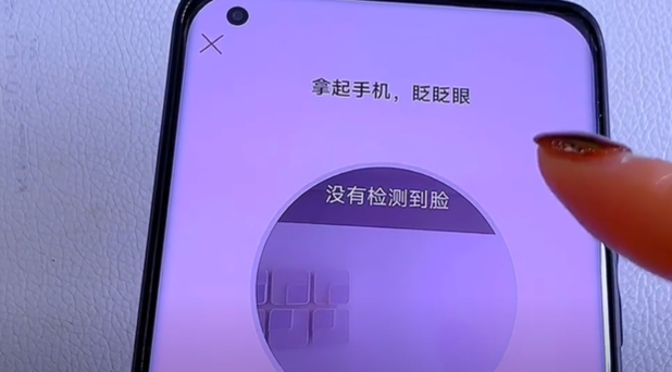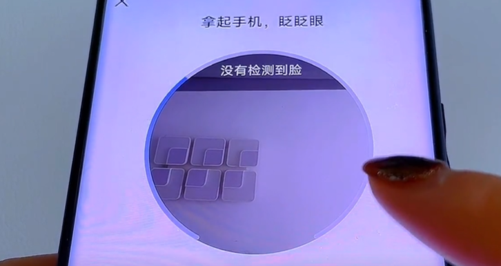 這時候就會出來這個小圓框,然後我們根據它的提示拿起手機進行眨眼就可以認證成功了。