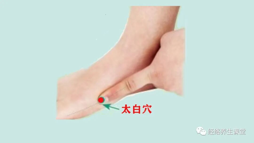 太白穴是脾經的原穴,按揉或者艾灸此穴可以補脾,對脾虛症,例如食慾不振、身乏力、腹脹、便溏等臟腑病作用,可以補後天之本,增強體質。