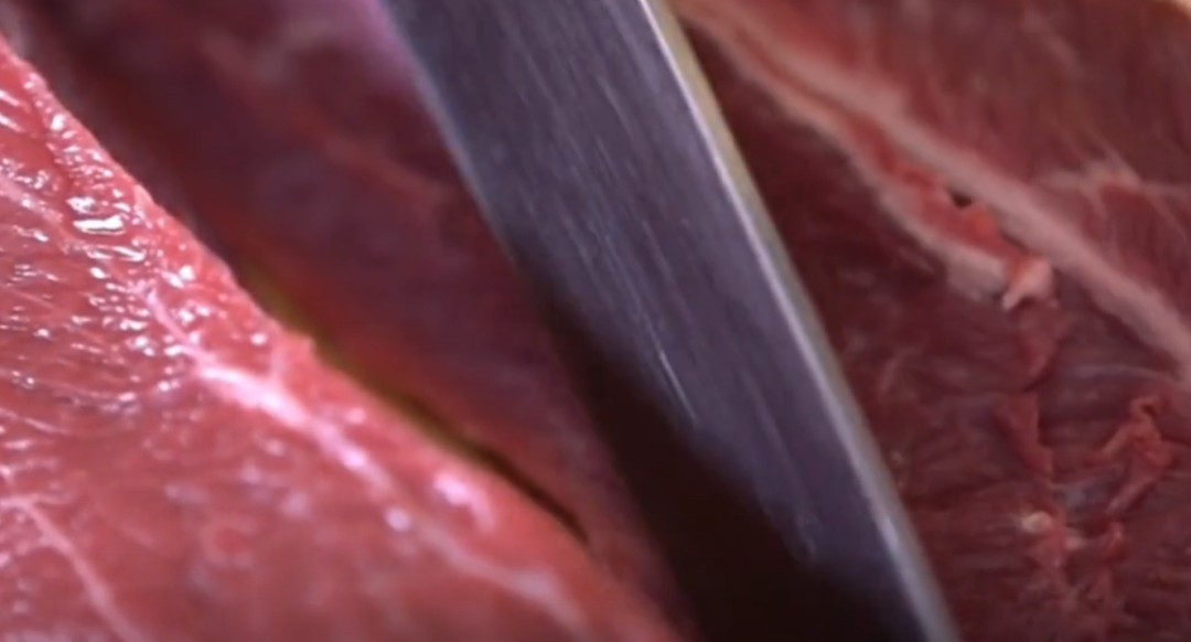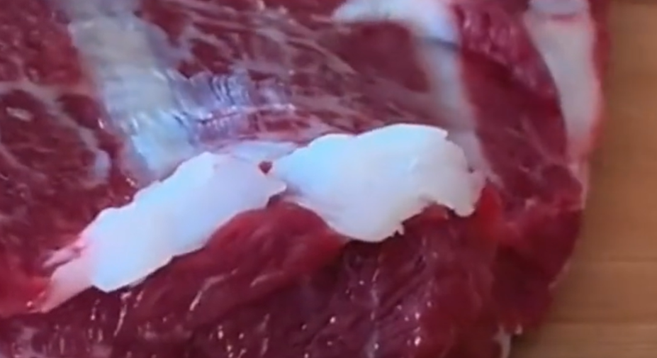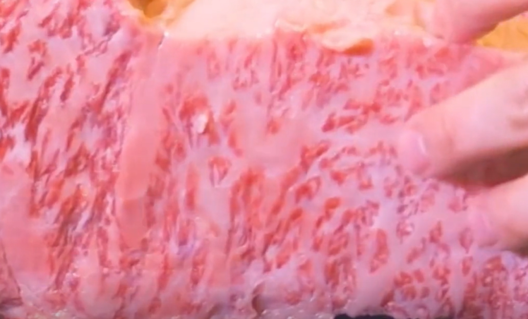 第一個部位就是上腦肉,牛的上腦肉和牛的腦袋沒有任何的關係,牛上腦肉是指的牛肉後面頸部的部位,也就是牛脖子的部位,因為這個部位它的運動量非常的少,所以這個部位它的肉質非常的細嫩。