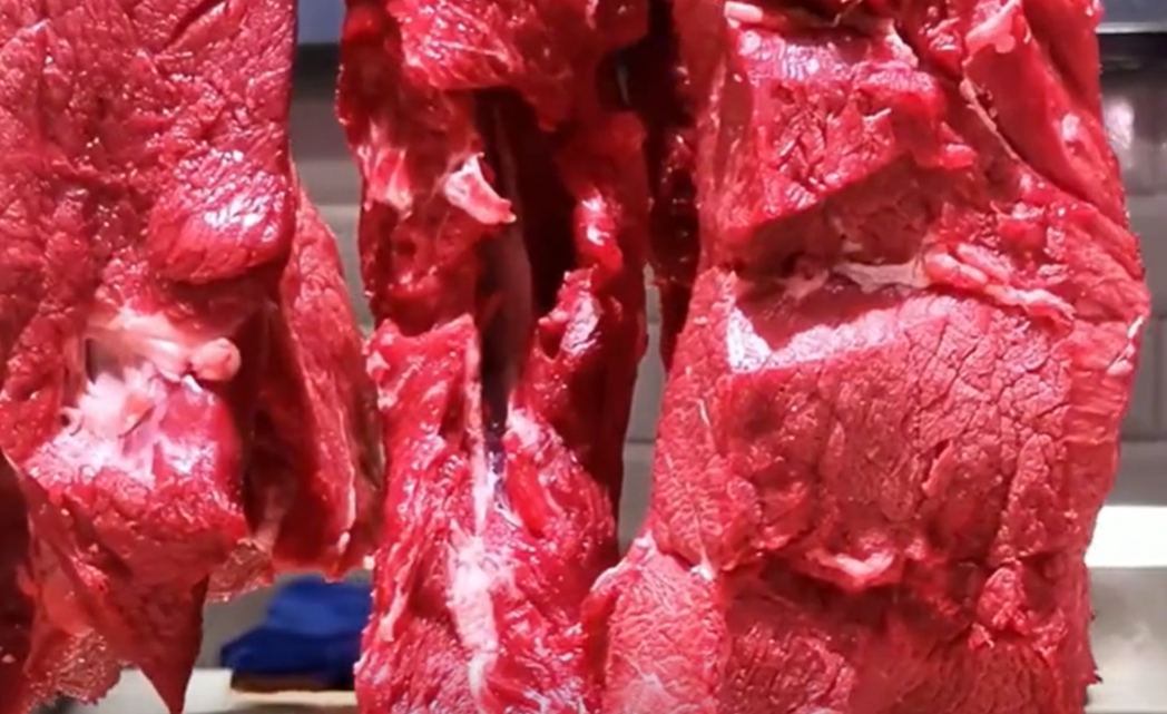 第二個部位就是牛裡脊肉,牛裡脊肉這個部位應該是牛裡面最鮮嫩的部位了,而且也是牛肉裡面的上等品,當然它的價格也是不便宜,因為這個裡脊肉在牛身上也就最多幾斤,我們耳熟能詳的菲利牛排就是採用牛裡脊肉來做的。