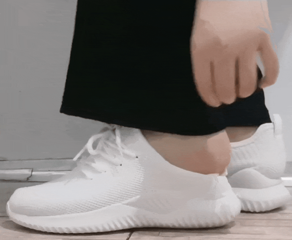 穿鞋時也無需使勁拔拽,這雙鞋採用一腳蹬設計,手輕輕一提腳輕鬆蹬進鞋內,超級方便。