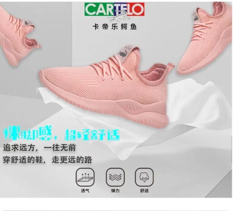而卡帝樂鱷魚飛織鞋面採用紗線織成,形成網眼透氣效果,鞋內熱氣向外排出,透氣性一絕。