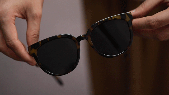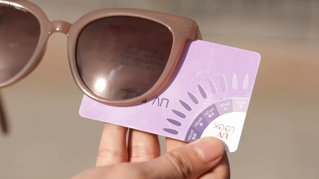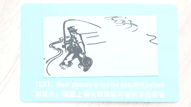 每一款太陽鏡的包裝盒內,有一個偏光測試卡。如果是偏光鏡片,鏡片正對偏光測試卡,圖案會發生變化,可以測試下。