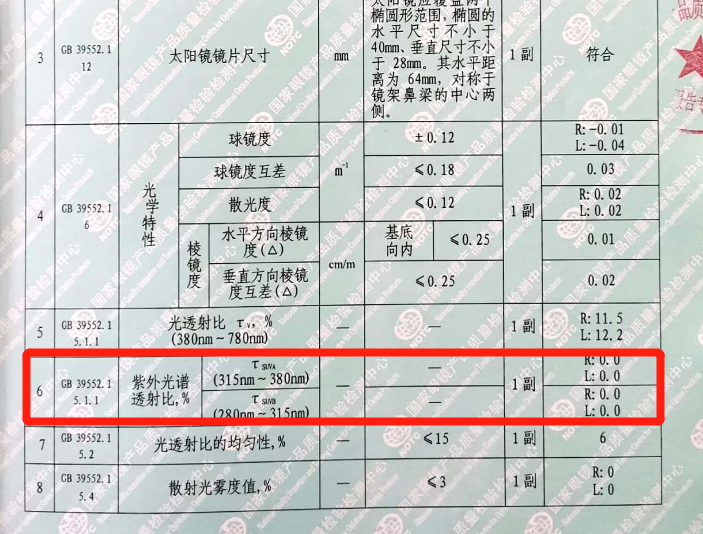 ▲檢測報告附上,由國家眼鏡產品質量監督檢驗中心檢測。