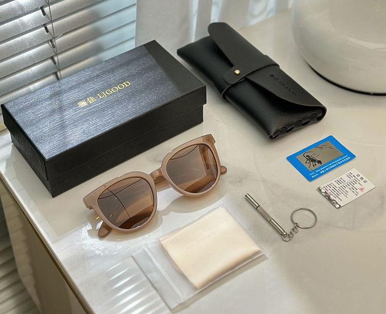 附贈眼鏡布、偏光測試卡、迷你螺絲刀和收納包。皮質收納包很有質感,平時用來收納太陽鏡,不用擔心磨損鏡片。