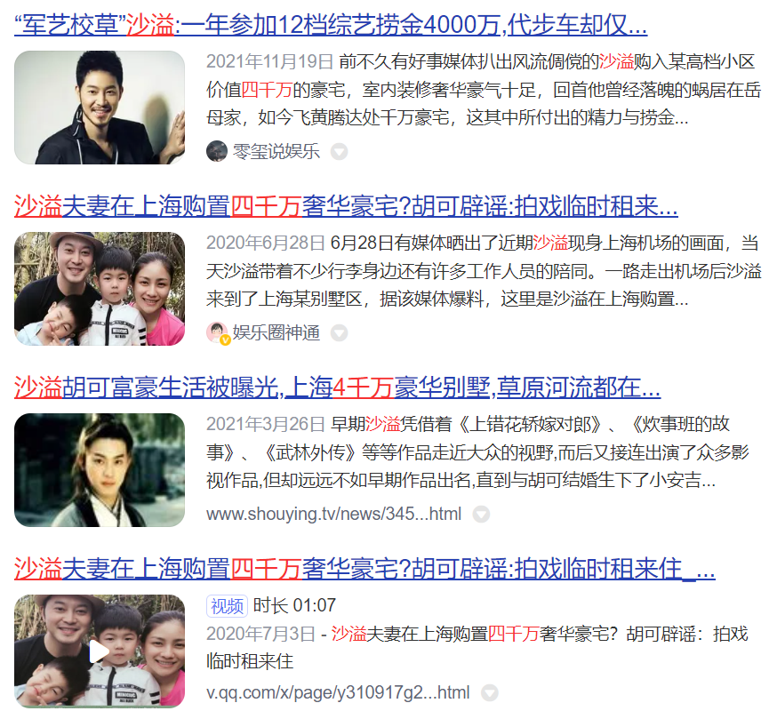 但就在2021年前後開始流傳一個謠言,標題就是“沙溢參加多檔綜藝撈金4千萬買豪宅”。