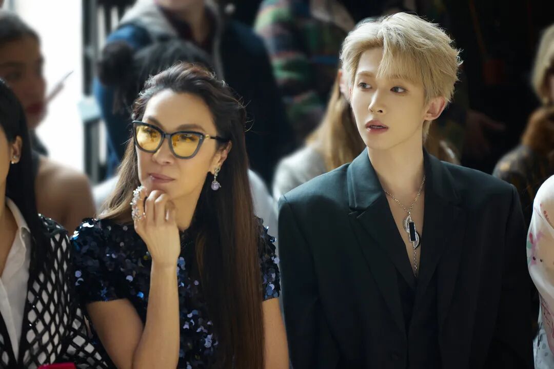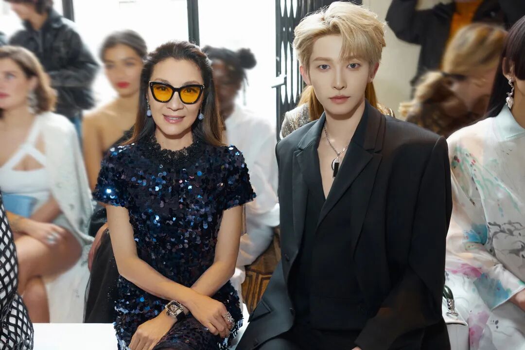 在咱們Michelle Yeoh忙著和《瞬息全宇宙》family趕場去領獎的同一時間,和陀螺一樣忙到不停的她還抽空回巴黎看了場秀(為什麼是回呢,因為她定居在巴黎)。