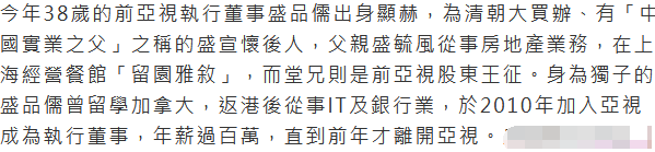蔡一鳳的老公呢,是前亞視高層盛品儒,而他也是早期實業家盛宣化的後人,可以說盛家是根深蒂固的老牌貴族了,上海菜館留園雅敘也是他家的。