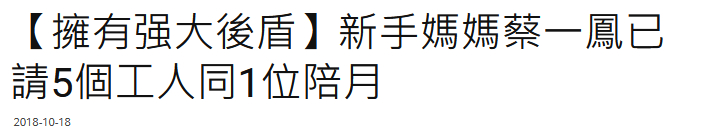 蔡一鳳對兩個寶貝孩子寵到什麼地步呢?18年她在誕下龍鳳胎時,可是請了5個傭人,1個奶媽陪月,一點也不讓孩子受委屈的。