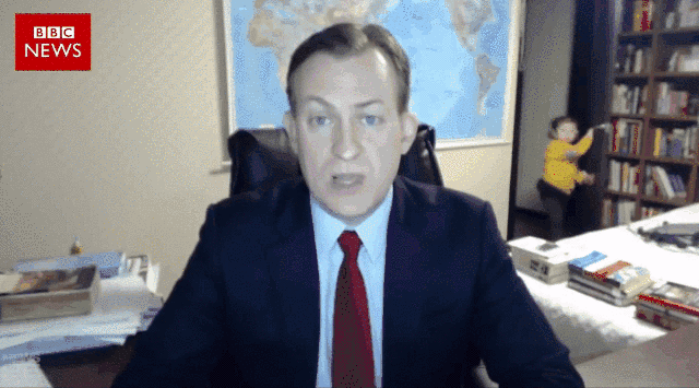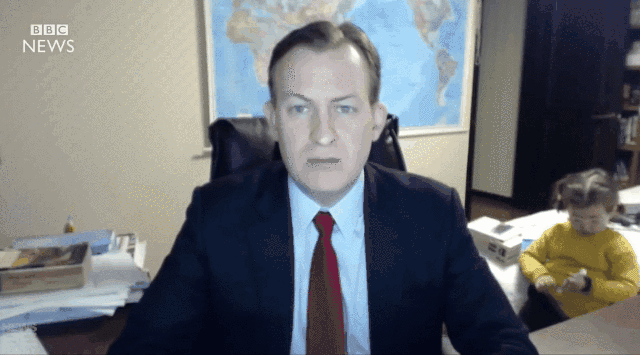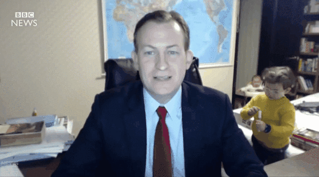 某教授連線直播到一半,小孩突然闖入鏡頭: