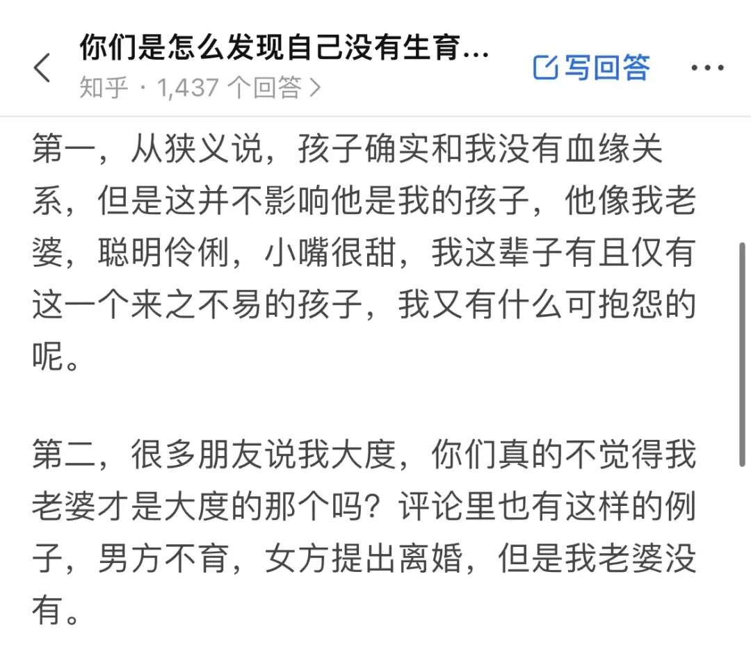 現實生活中,有男方無法接受和自己沒有血緣關係的孩子,最後放棄生子的;也有男方可以接受供精,但女方難以接受,最終選擇離婚的;還有雙方長輩無法接受,逼迫夫妻倆離婚的……