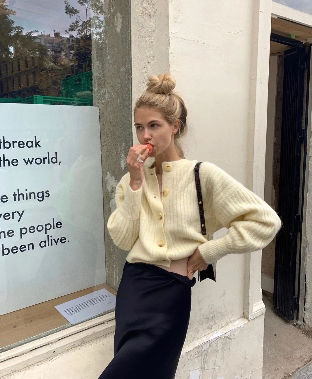 如今說的奶奶衫是說上世紀五六十年代很流行短款針織衫,簡單隨意,但是能夠輕鬆穿出復古時髦感,所以收穫了很多時髦精的喜愛。