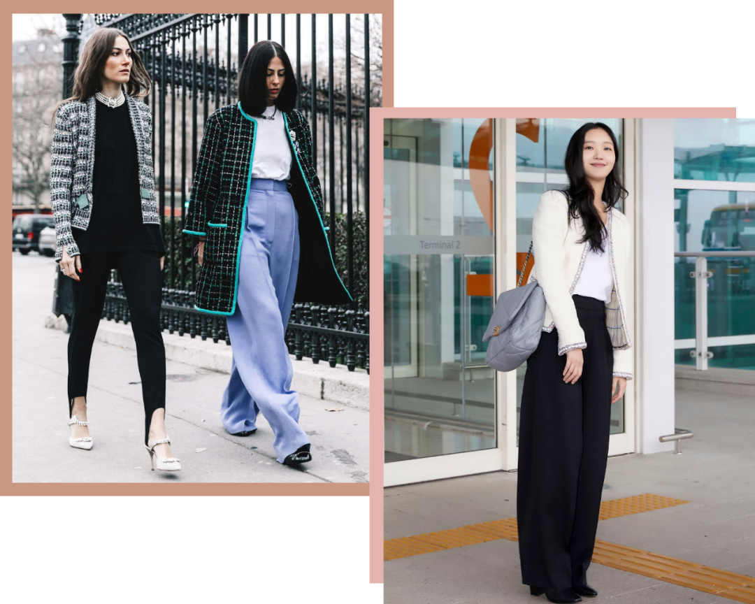 今年也比較流行中長款的小香風外套,垂直的剪裁+寬鬆版型,不僅可以遮住多餘贅肉,而且看起來更有精氣神。