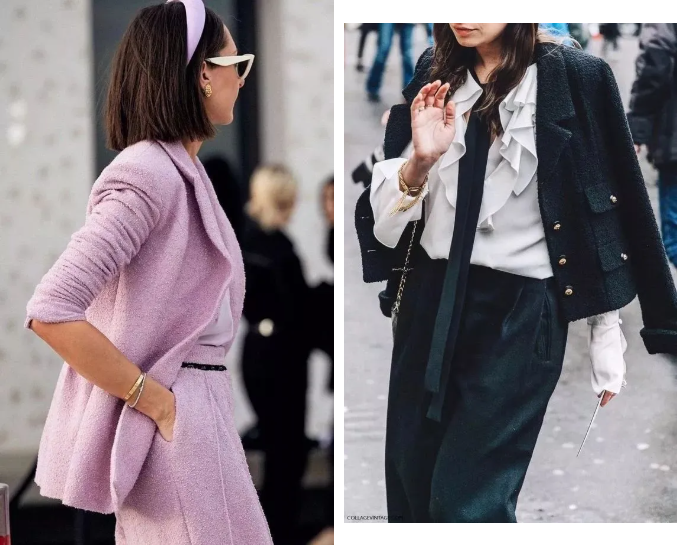 值得一提的是,小香風外套除了短款還有長款,小個子建議選短款顯精神(想穿長款記得展現高腰線),高個子就可以嘗試個性的長款(不過某寶長款真的蠻少見)。