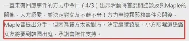 出乎意料的是,方力申出席活動時很坦率地承認了,女友就是曾誤信韓國邪教的受害者之一葉萱曾