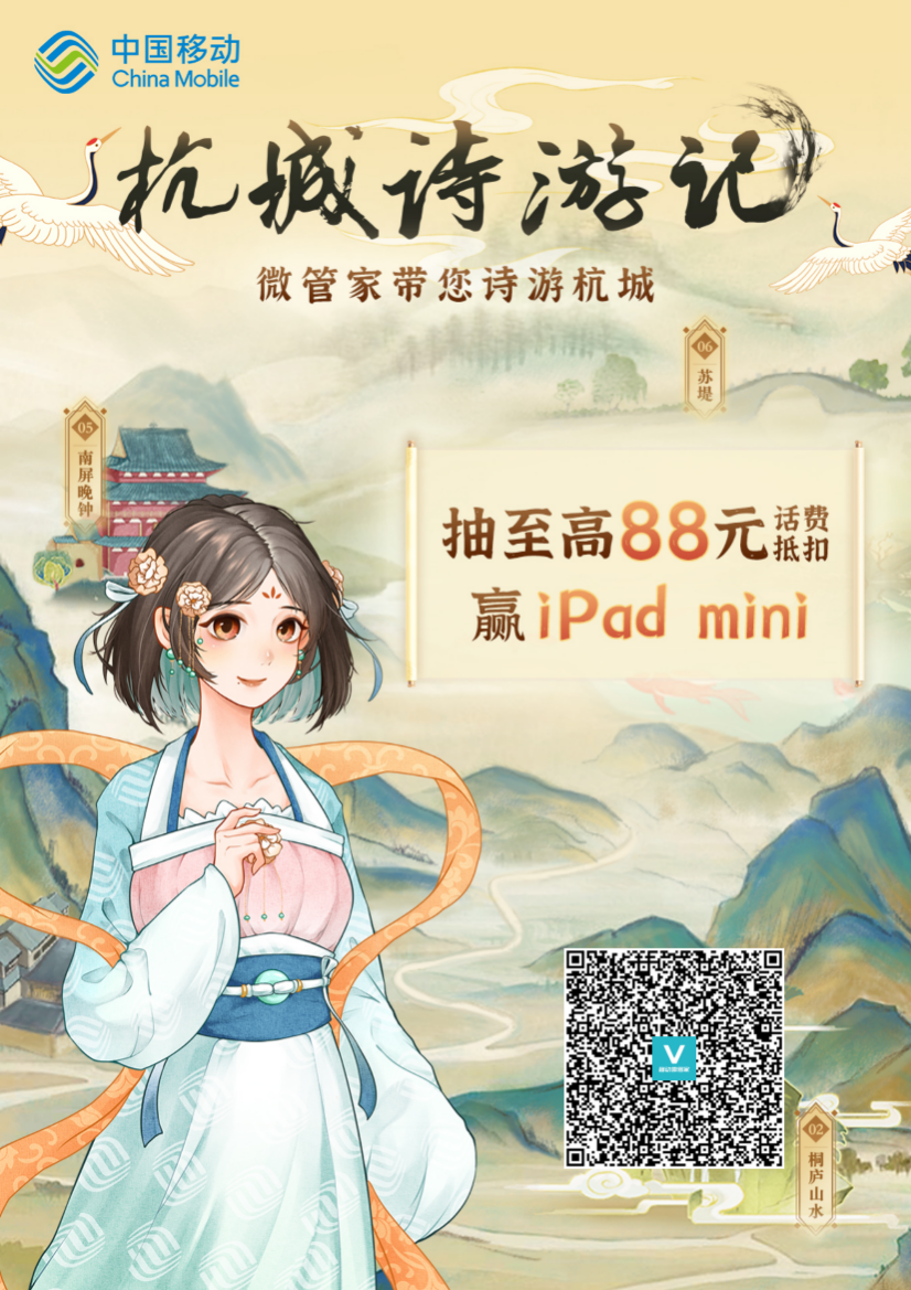 杭州移動微管家邀您參與“杭城詩遊記”活動,帶您走進詩中杭城,領略古人筆下的杭州諸景~