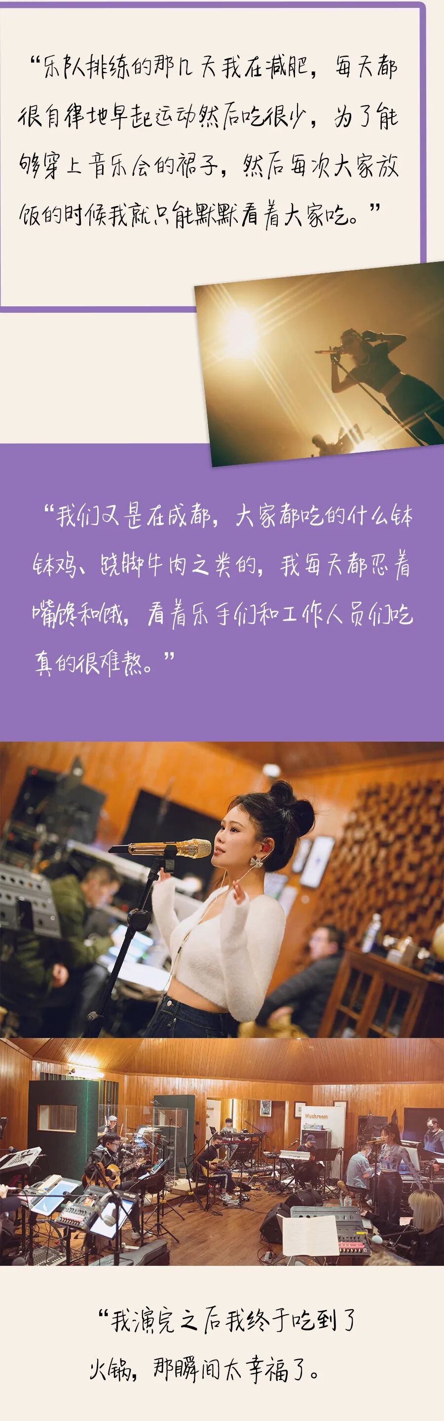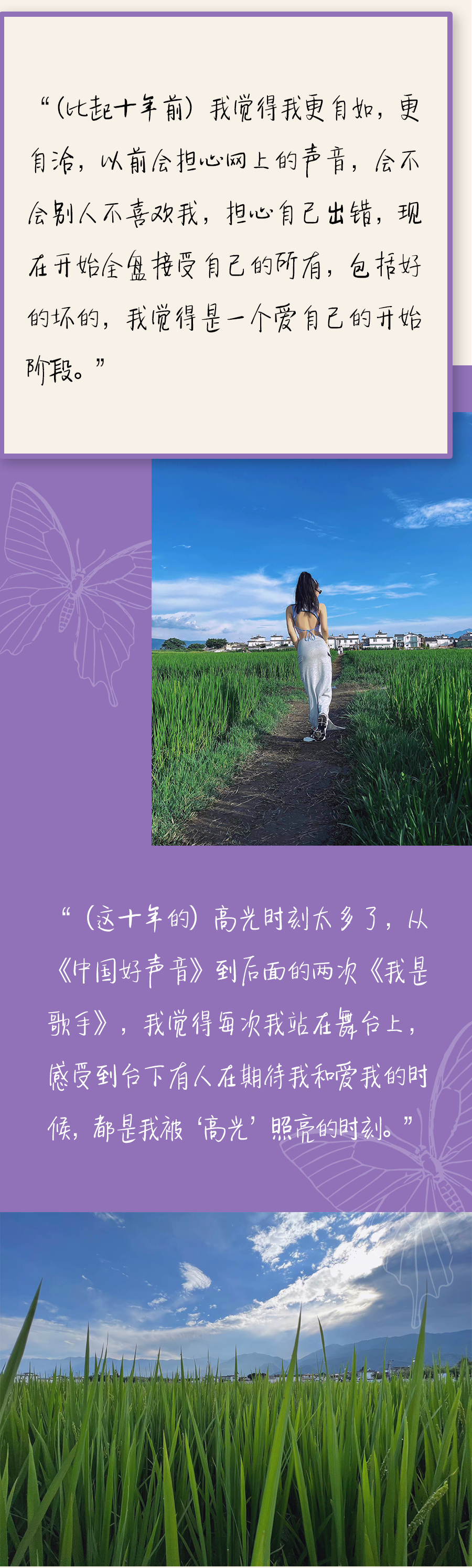 她在舞臺上提起十年前,十字開頭的年齡跑到北京追求音樂夢想,提起唱這首歌是因為媽媽和外婆做飯的時候經常唱,歌詞的背後是思鄉情切。