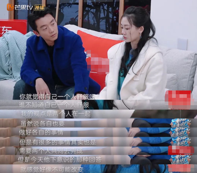 因為鄭愷雖然嘴上總是說婚姻中夫妻間要有獨立的空間,苗苗有時候會委屈,他只會說些沒用的場面話;有時候會流淚,面對問題他的第一反應不是跟老婆一起完成:“誰不知道自己一個人舒服,我的觀點是兩個人在一起。”