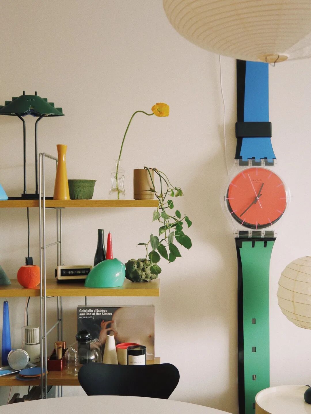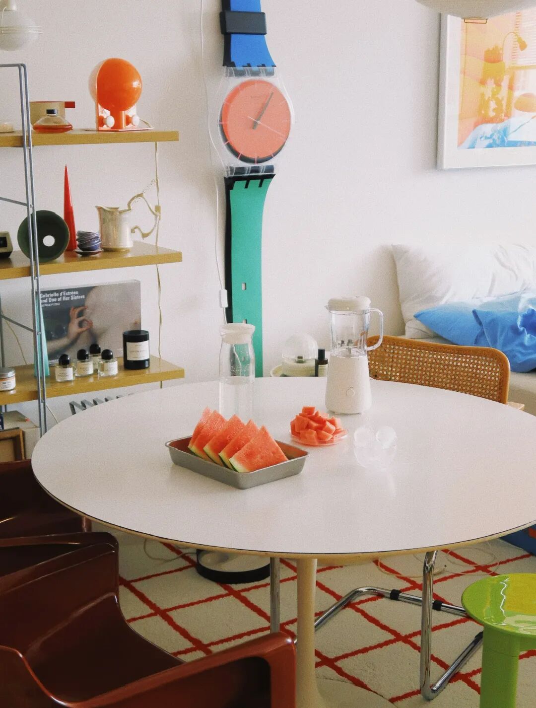 在這塊表奠定的基調下,家裡漸漸有了絲絨紅色的椅子、藍色的燈、綠色的植物,黃色的書架……