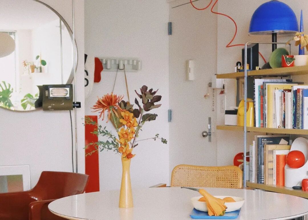 她開始在自己家裡踐行,於是有了現在這個色彩跳躍的家,視線仔細端詳每一處都會被驚喜到。有陽光灑進家裡的時候,會覺得每一處顏色亮麗的傢俱都在舞動。