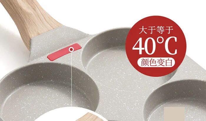 不會看火候溫度的,鍋柄處比其他同類鍋型多了一個非常巧思的溫度硅膠條,正常狀態是紅色的,變成粉色說明鍋熱了,可以放食材了。