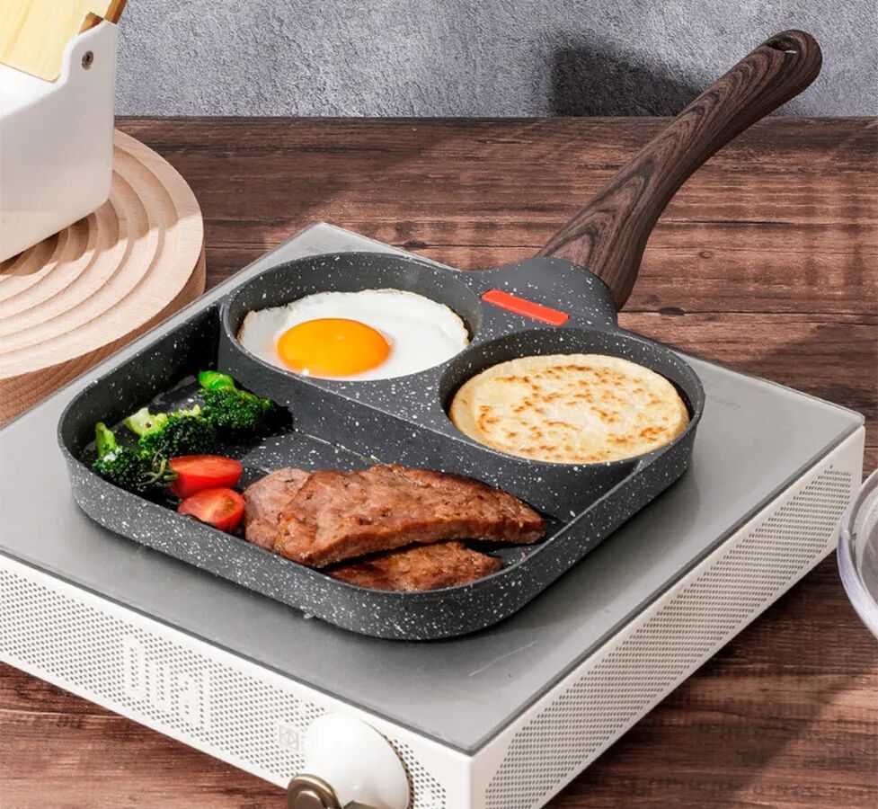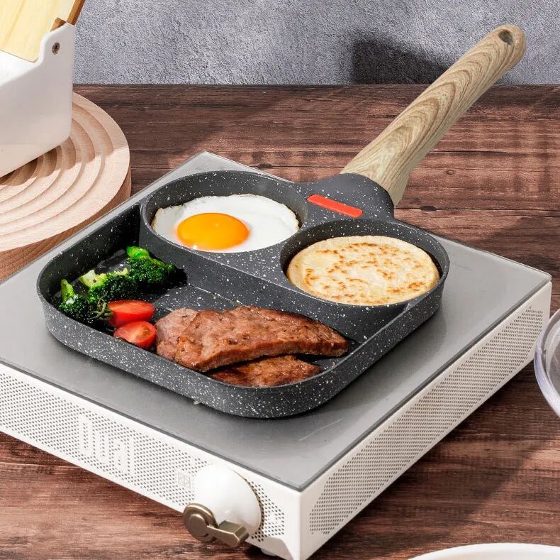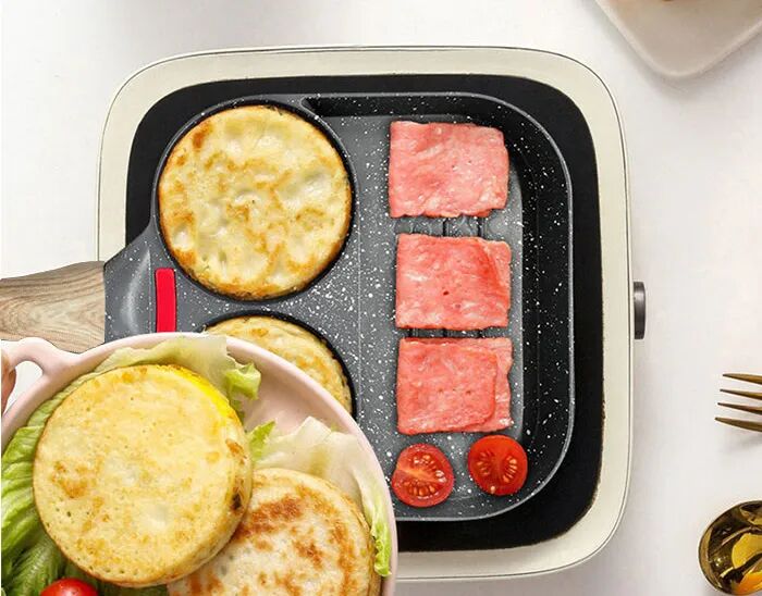 做早餐一鍋端特別省時間,燃氣灶,電磁爐都能用,省電省氣,麥飯石的材質,清洗起來也特別方便。