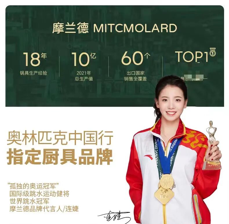她用的就是摩蘭德MITCMOLARD家的多格麥飯石小煎鍋,這個品牌還是奧運冠軍連捷代言的,“鍋友們”的使用體驗的口碑都爆表了!