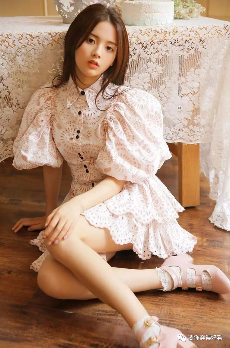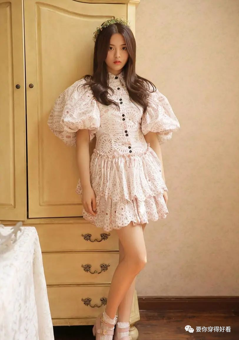 嘗試少女洛麗塔造型的楊超越可以說是美出了天際。粉色的蕾絲鏤空短裙還搭配著寬鬆而有氣質的蓬蓬袖,這種甜美而俏皮的少女感在她的詮釋下真的特別到位。