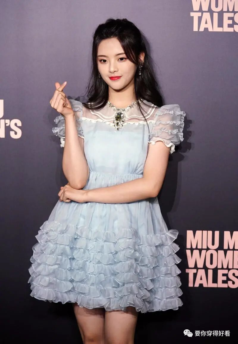 現在的她在演藝的道路上也是越走越順暢了。長相甜美、身材高挑的她在活動造型方面基本沒有出錯的時候。這件藍色的蛋糕裙也展現了她作為小女生的可愛俏皮。娃娃領的款式很有少女心,加上可愛的泡泡袖就會讓人感到滿滿的少女感。蛋糕裙的褶皺也突出了她的甜美氣質。這身造型簡直是又仙又美。