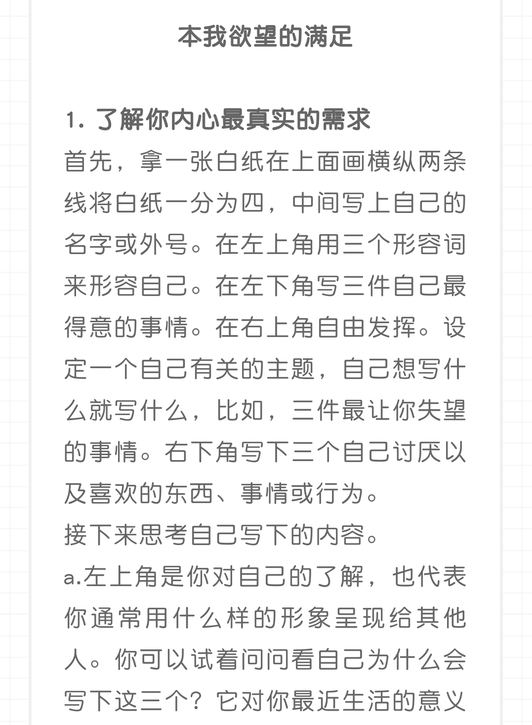 首先,你需要了解自己的人格圖譜,在你的人格中,本我、自我、超我分別佔比如何?扮演著怎樣的角色?