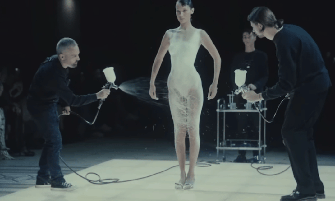 在Coperni大秀上更是壓軸帶來震撼全場的液體噴繪展示。