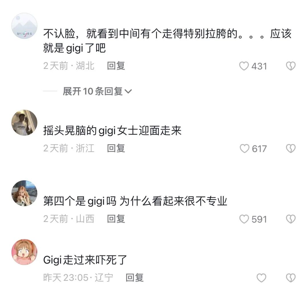 這次時裝週跟Gigi同臺的Prada、範思哲兩場大秀,她的表現都比後者得體很多,