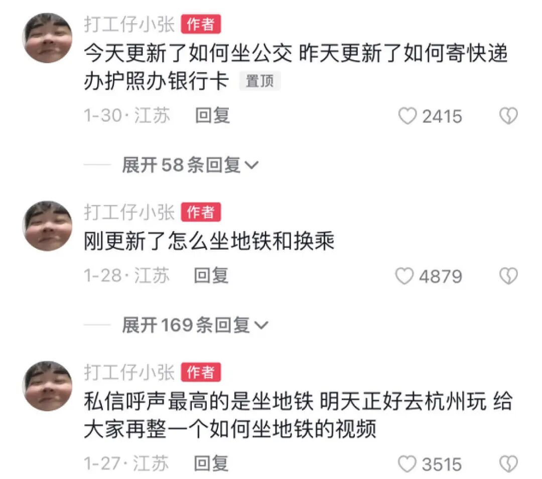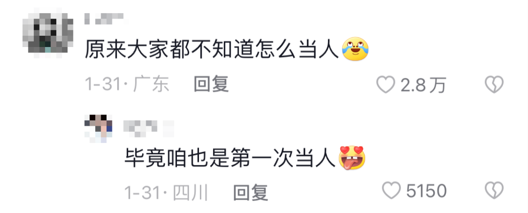 還有許多網友會補充小張遺漏的細節,把評論區變成新手討論區—— 有網友把小張的視頻發給了媽媽,從來沒走出過家鄉的媽媽看完後,一個人坐著高鐵去北京看望女兒。也不止是小張,類似這樣教學生活技能的視頻很多博主都有在做。前幾年爆火的國外博主Dad, how do I,就是一個曾經被父親遺棄的孩子,長大後做起互聯網爸爸,教網友打領帶刮鬍子的暖心故事。《如何如何》合集的簡介是這樣寫的:誰都不是生下來就吃過魚子醬的。這個世界很大,總有我們沒見過的世面,沒接觸過的事物。你以為的常識,可能也只是別人沒接觸過的體驗。 即使是208w的大明星們也有第一次,有人不會吃魚子醬,有人吃芒果不知道有核,有人去西餐廳不知道怎麼拿刀叉。 小張也有過不自信的時候,第一次出國一頭霧水,一路都跟在朋友屁股後面,悶不吭聲。還有一次,小張回到縣城,看見地裡綠油油的農作物,誤把秧苗當成了韭菜。因為淋過雨,所以想幫人撐把傘。 不認識韭菜跟不會坐地鐵有什麼區別呢?無非是大家成長的環境不同,經歷的生命體驗不同而已。 有人在焦慮工作會不會被AI替代,有人在擔心明天出門不會看地鐵方向。在下意識脫口而出“這都不知道”的時候,或許我們就成了傲慢不自知的城市人。《如何如何》系列,緩解了他們應對不同境況的窘迫和尷尬。 鼓勵他們放下自卑和膽怯,壯膽去嘗試第一次,就會發現這一切也沒什麼大不了的。到那時,或許我們每個人都將是小張,去幫助曾經那個同樣無助害怕的自己——“原來大家都不知道怎麼當人。”“畢竟咱也是第一次當人。”