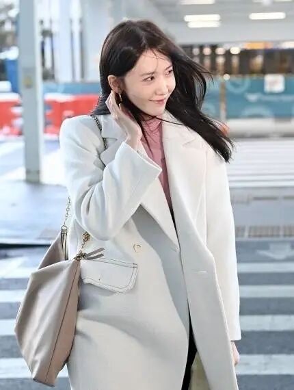 允兒的這個配色也很溫柔大氣,奶白色大衣配粉色內搭,溫婉乾淨,簡潔優雅,適合大部分女生。